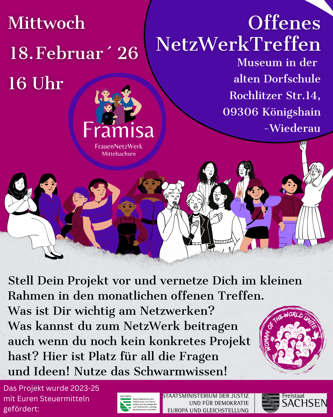 - Neue Infos von Framisa – neue Projektgruppentreffen / Wie weiter mit dem Netzwerk / Entwicklung der Website / Wer organisiert die nächsten Netzwerktreffen?