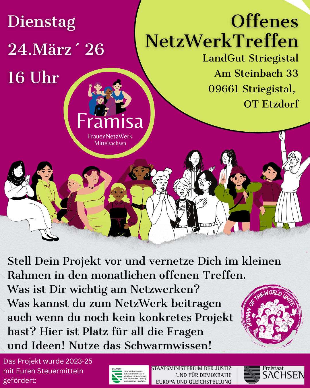 - Neue Infos von Framisa – neue Projektgruppentreffen / Wie weiter mit dem Netzwerk / Entwicklung der Website / Wer organisiert die nächsten Netzwerktreffen?