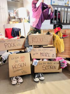 - Fairer Tausch: Der Tausch funktioniert nach dem Prinzip “Geben und Nehmen”. Wenn du Kleidung mitbringst, kannst du dir im Gegenzug andere Kleidungsstücke aussuchen.